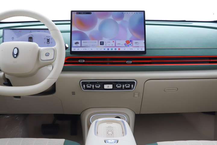车身配色也很有特色,六款颜色都源自Vintage珠宝,点翠蓝、璀璨绿这些颜色在阳光下的光泽度特别好。后来了解到,它采用了8层车漆工艺,喷涂环境几乎做到“零灰尘”,而且油漆色彩粒子外包裹着树脂,轻微剐蹭后还能自我修复,对于我这种偶尔会蹭到路沿的新手来说,这点太实用了。